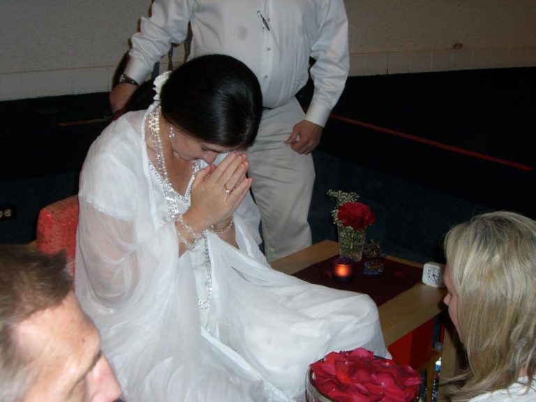 When the Darshan is complete, Mirabai will lower her head to let you know that your time is complete. Please then stand up and walk to the side and return to your place.